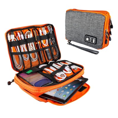 Insten Travel Electronic Case Organizer for Phone Accessories, Cable, Charger, USB Drive, SD Card (Orange and Gray)